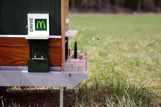 走近這家店,掀開屋頂才發現,原來這是一家為上千只蜜蜂打造的蜂箱“麥當勞”——McHive。這家位于瑞典的McHive,是由廣告公司NORDDDB設計并建造而成的,由于農業發展和人類殺蟲劑的廣泛使用,在全球各地蜜蜂群體都受到嚴重威脅,而瑞典麥當勞一直致力于保護瀕危的蜜蜂,于是就有了世界上最小的麥當勞分店。